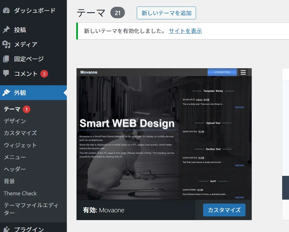 テーマをカスタマイズするには、以下の手順に従ってください。