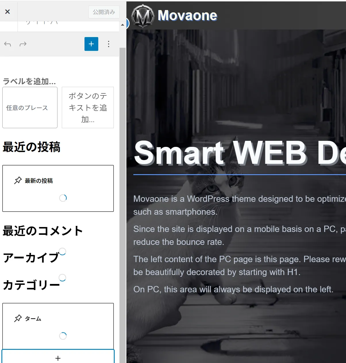 サイドバーに表示したいブロックを選択してドラッグして作成します。