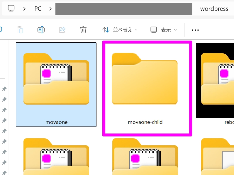 「Movaone」のあるテーマディレクトリに空のディレクトリを作成します。