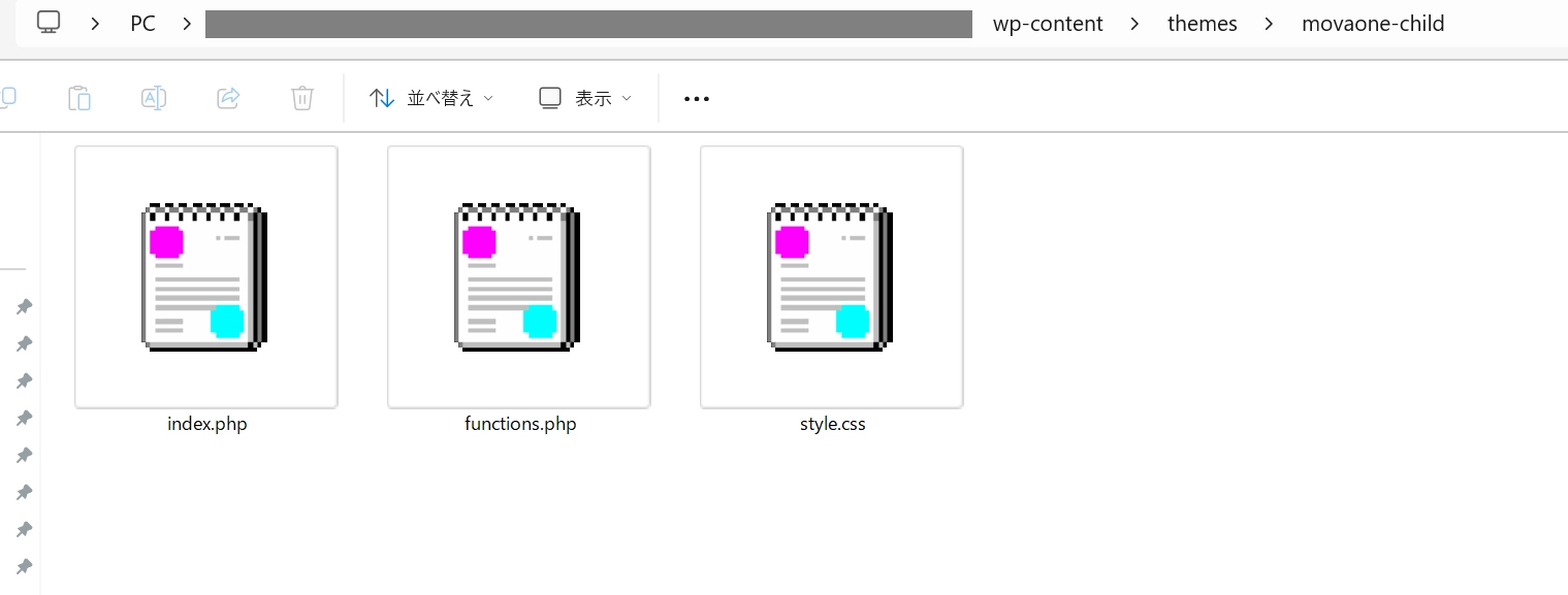 空のファイルで構わないので、新規作成でindex.php、style.css、functions.phpをそれぞれ作成します。