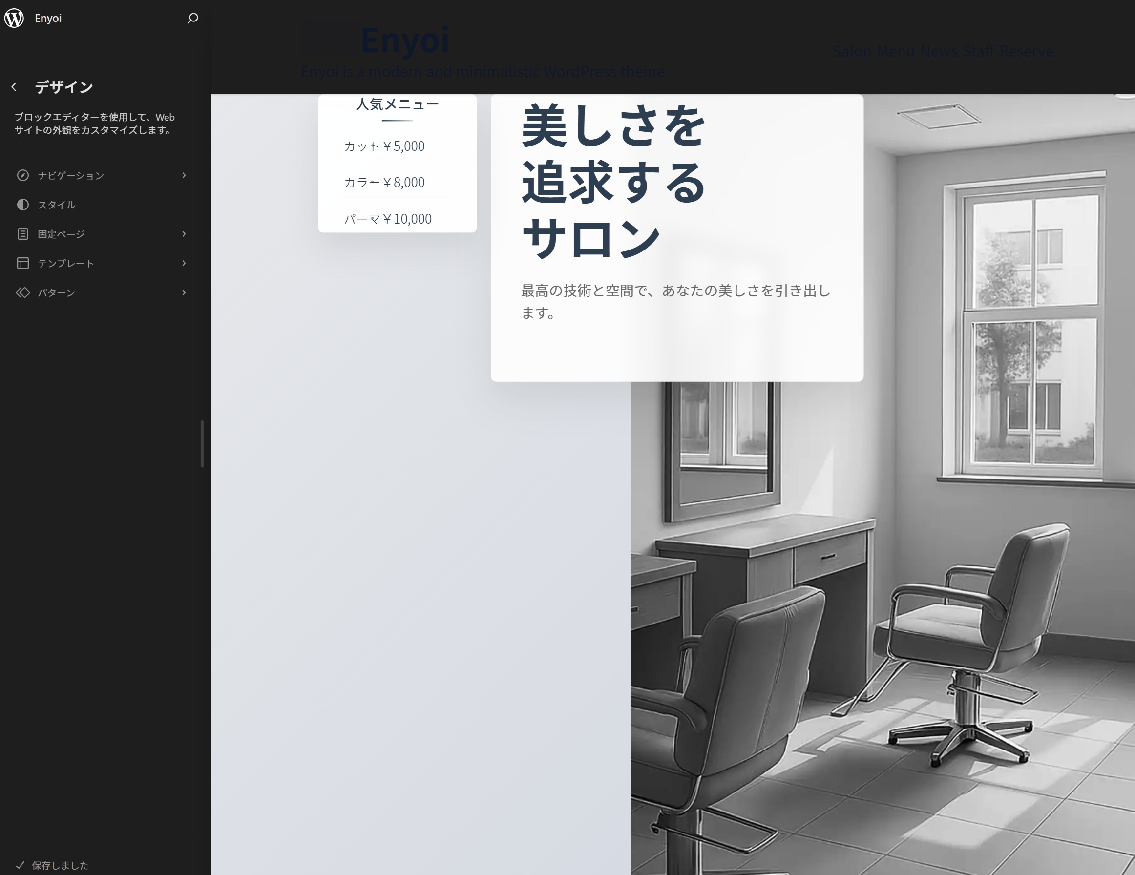 Enyoi(エンヨイ)は、美容院やサロンのために設計されたWordPress公式承認テーマです。