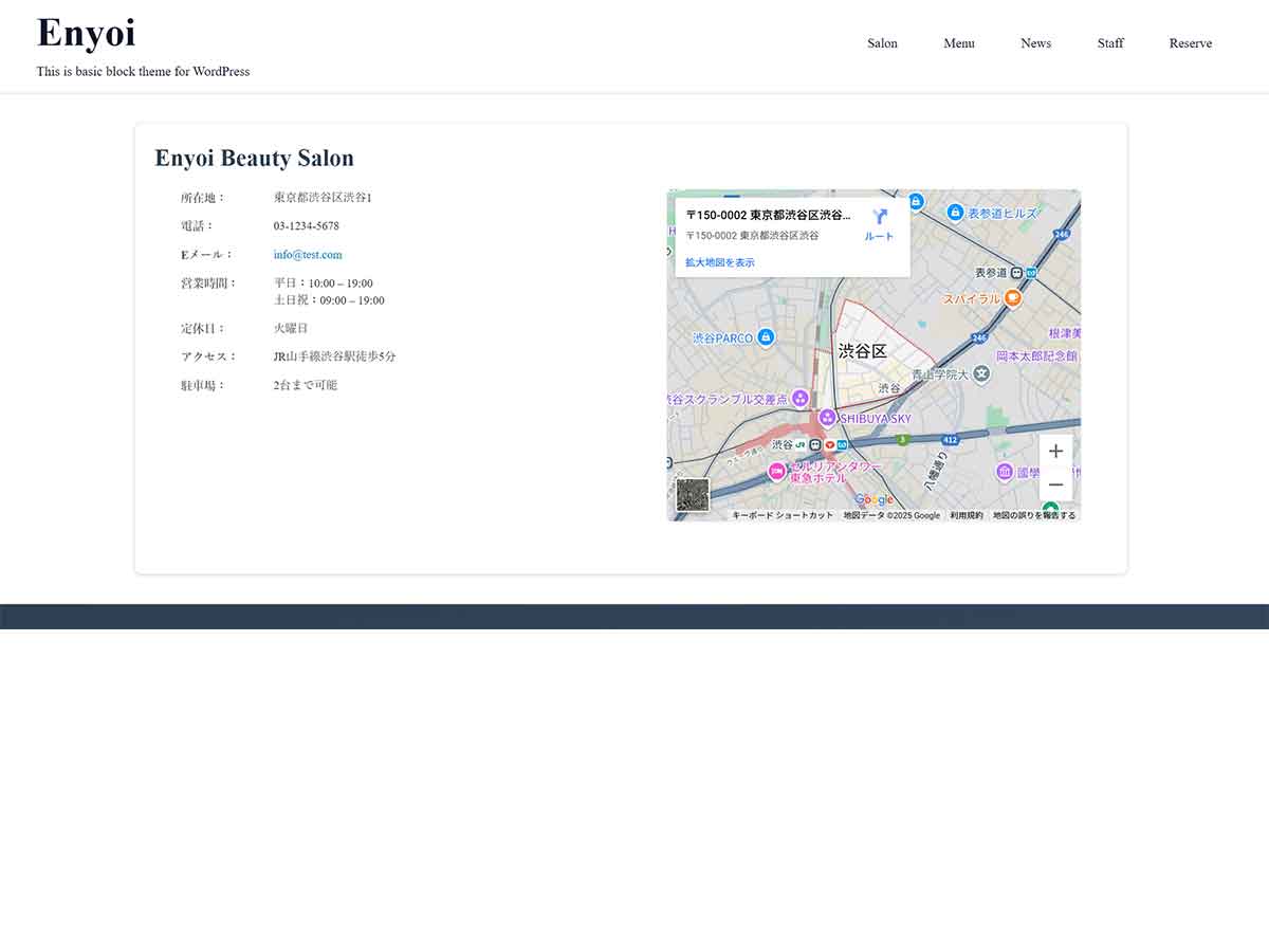 また専用プラグイン「Enyoi Store Info」を使えば、営業時間や住所、地図、予約ページへのリンクを簡単に追加可能。