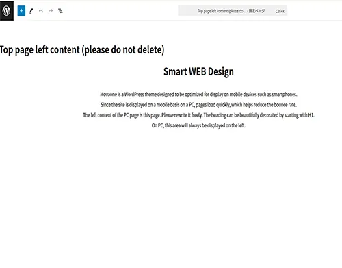 スマホ以外のデバイス用の左コンテンツは固定ページで編集です。