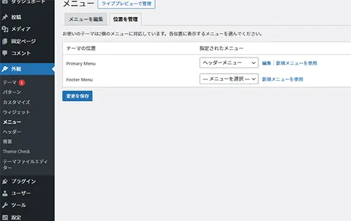 ヘッダーとフッターのメニューを各自に設定します。